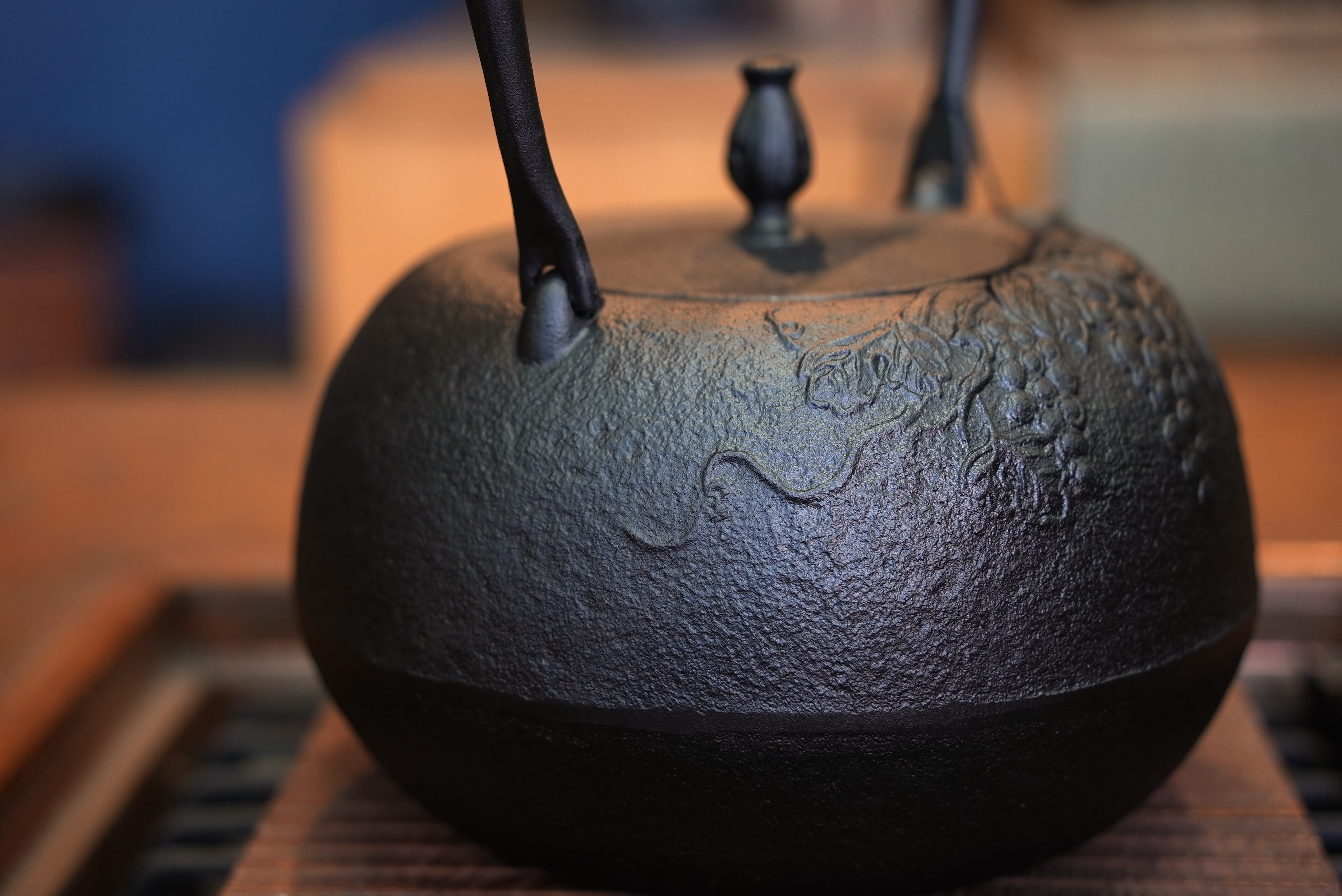 豊穣の象徴であるぶどうをモチーフにした鉄瓶です。