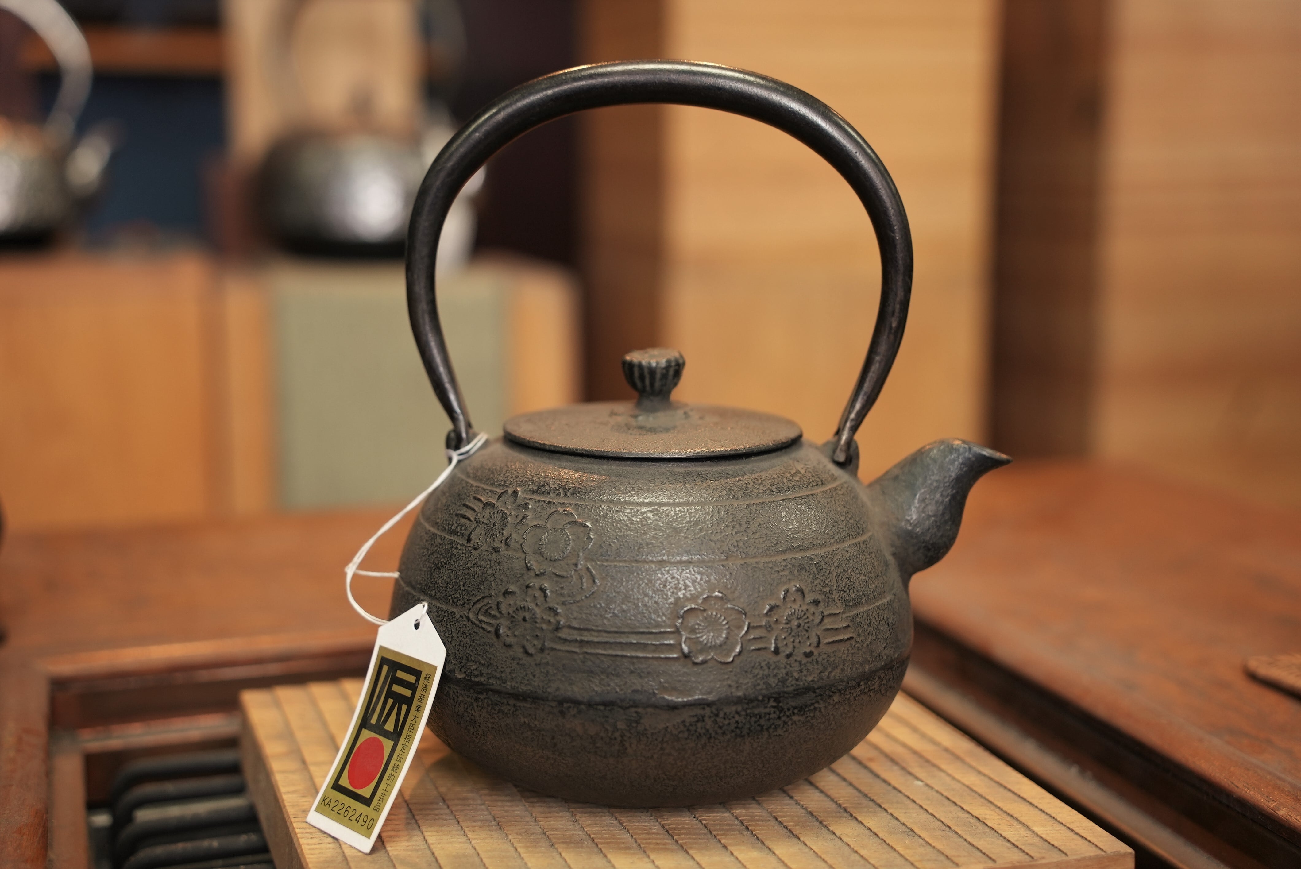 南部鉄器 鉄瓶 丸形 花いかだ 1.1L 松鹿堂 伝統工芸士 菊池真吾作